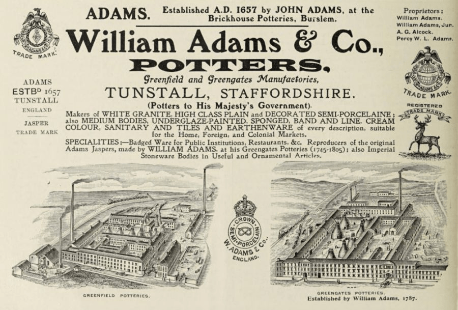 “WA and Co” is William Adams and Company, a pottery manufacturer that operated between 1657 and 1966 in the heartland of the Staffordshire Potteries.