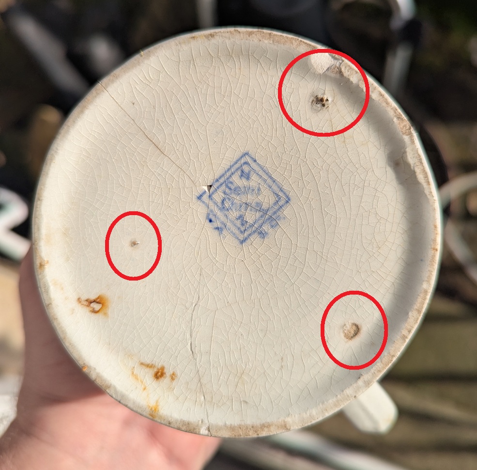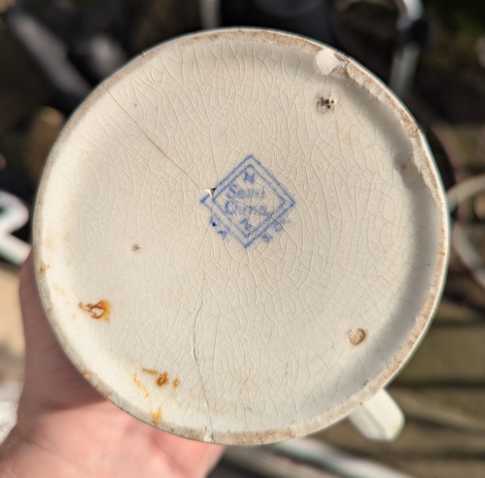 The pub, seeing the damage, chucked it away into the dump, only to be dug up 100 years later by the aforementioned schoolboy. It also has the makers mark on the base, which gave me another tingle!