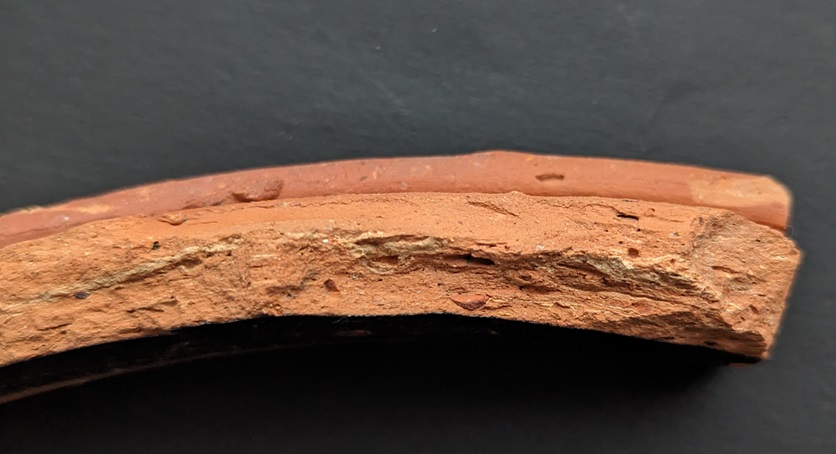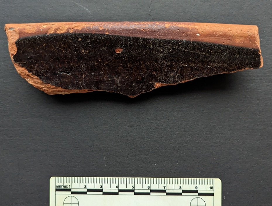 You can see the glaze on the interior and red slip on the exterior, with wonderful wiping marks left by the potter, and the characteristic fabric type.