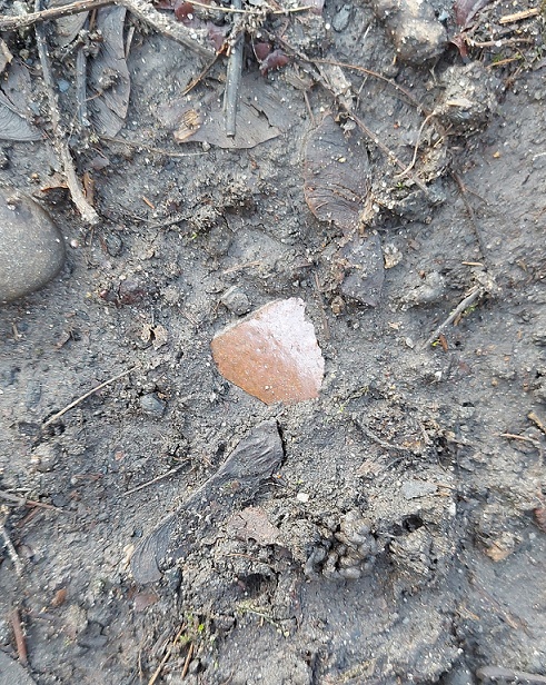 Bottom left – the sad remains of what was once a large clay marble. I gave a yell when I saw the poking through the mud “a dobber!” but alas, upon excavation, what I could see through the mud was all that there was left.