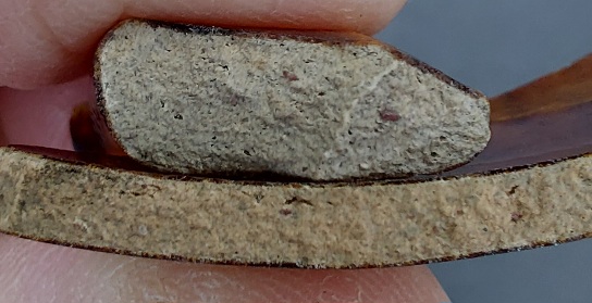 The mouth piece is interesting, and shows the manufacturing process clearly. Formed in a two-part mould, the pipe often has mould lines along it length that can be quite thick and sharp, especially if the mould is old and worn and doesn’t close properly. The answer is to pare away the flashing with a knife, which you can see happened here.